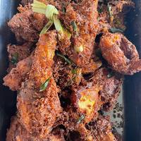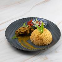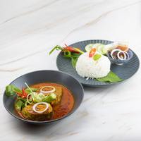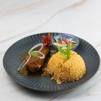 Nasi putih, Ayam Rose, Gulai Bendi, Timun,Sambal Belacan