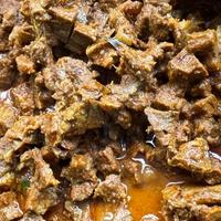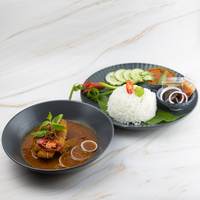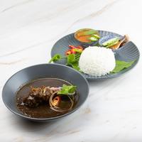 Nasi putih, Daging Masak Hitam, Gulai Bendi, Timun,Sambal Belacan
