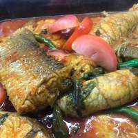 Nasi putih, Gulai ikan Senangi, Timun,Sambal Belacan